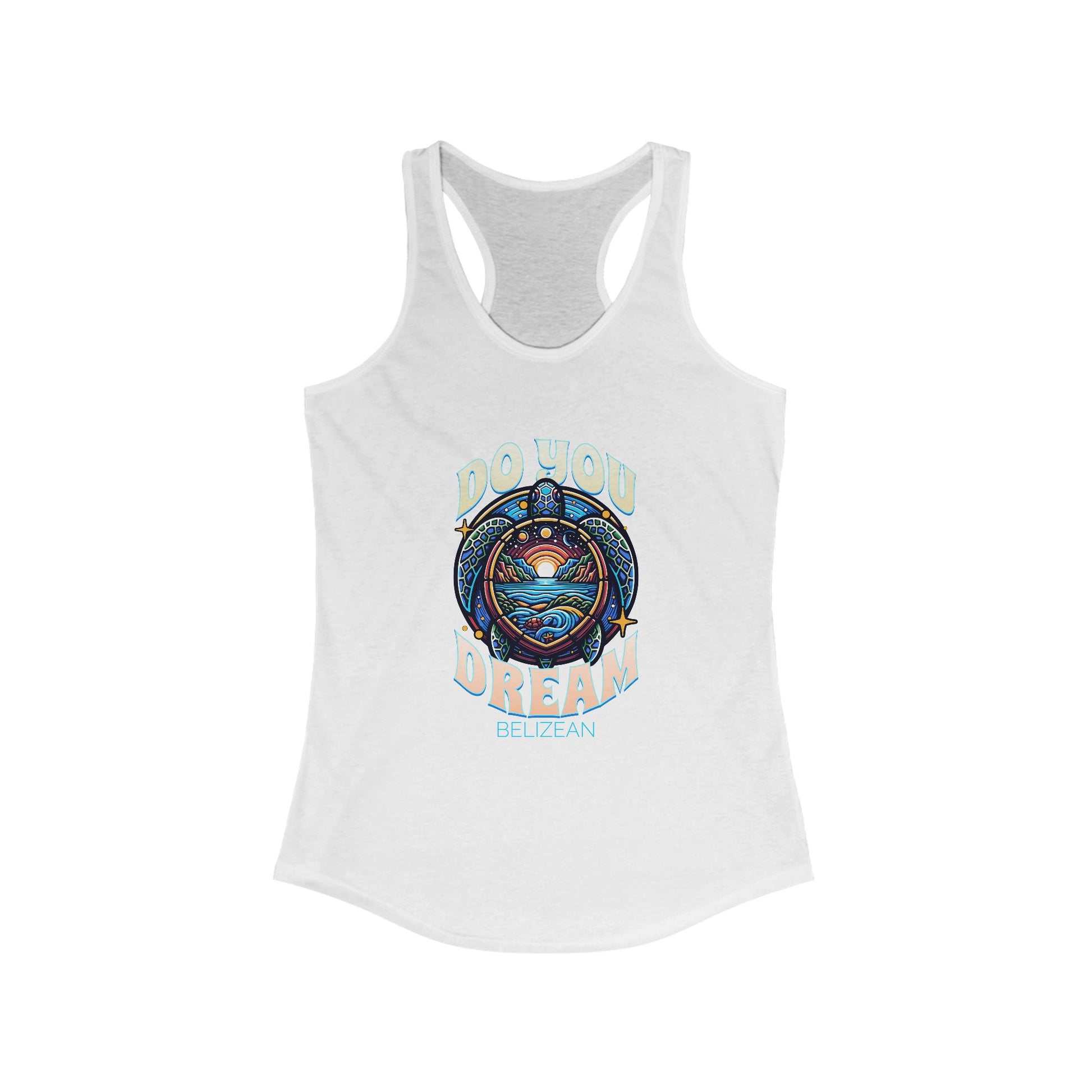 The Women’s Racerback Tank | Do You Dream | Belizean by 17N88W is more than just a top—it’s a way to wear your dreams of Belize. Made from a soft tri-blend fabric with raw edge seams and a flattering racerback cut, this tank is designed for those who cherish adventure and the laid-back island vibe.