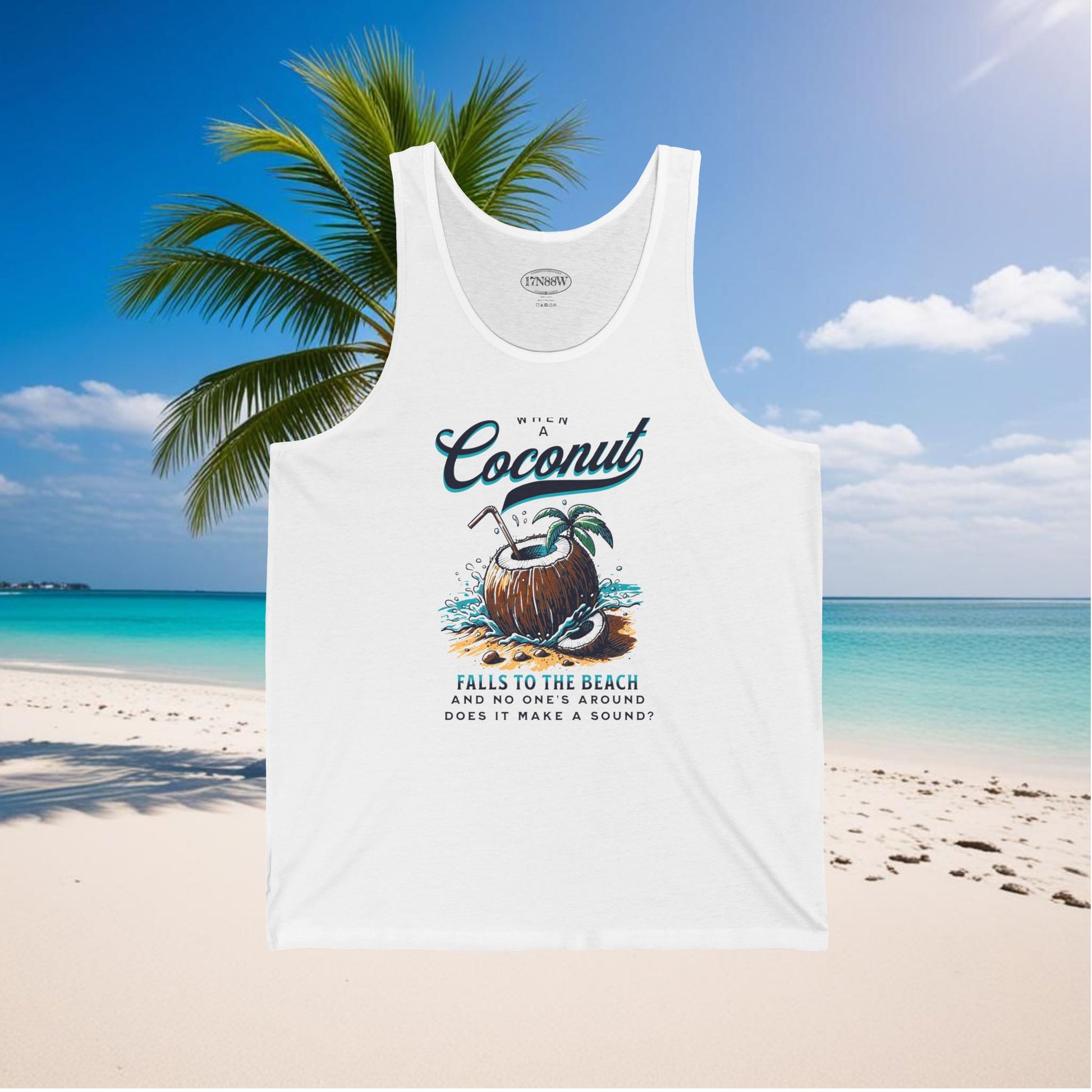 Whether you're catching the breeze on the beach or embracing the island spirit at home, this tank captures that serene moment when a coconut falls, symbolizing the simple yet stunning beauty of the tropics.